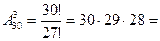 Пример 3. В студенческой группе 30 человек. Необходимо выбрать старосту, его заместителя и профорга. Сколькими способами можно это сделать?