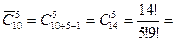 Пример 6. В конкурсе по 5 номинациям участвуют 10 фильмов. Сколько существует вариантов распределения призов, если по каждой номинации установлены одинаковые призы?