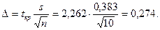 9. Отсюда по таблице распределения Стьюдента (приложение 2) находим