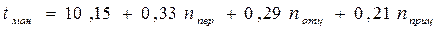 tман = 15,53 + 0,46 * 28 + 0,49 * 5 = 30,86 мин;