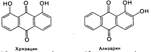 1. Мономеры (в основе лежит 1 ядро антрацена). В зависимости от степени окисленности кольца В мономеры подразделяются на 2 подгруппы: окисленные - в их основе лежит антрахиноновое ядро; и восстановленные - производные антранола, антрона и оксиантрона. Окисленные производные антрацена (антрахиноны) также разделяют на 2 группы - производные хризацина и производные ализарина.