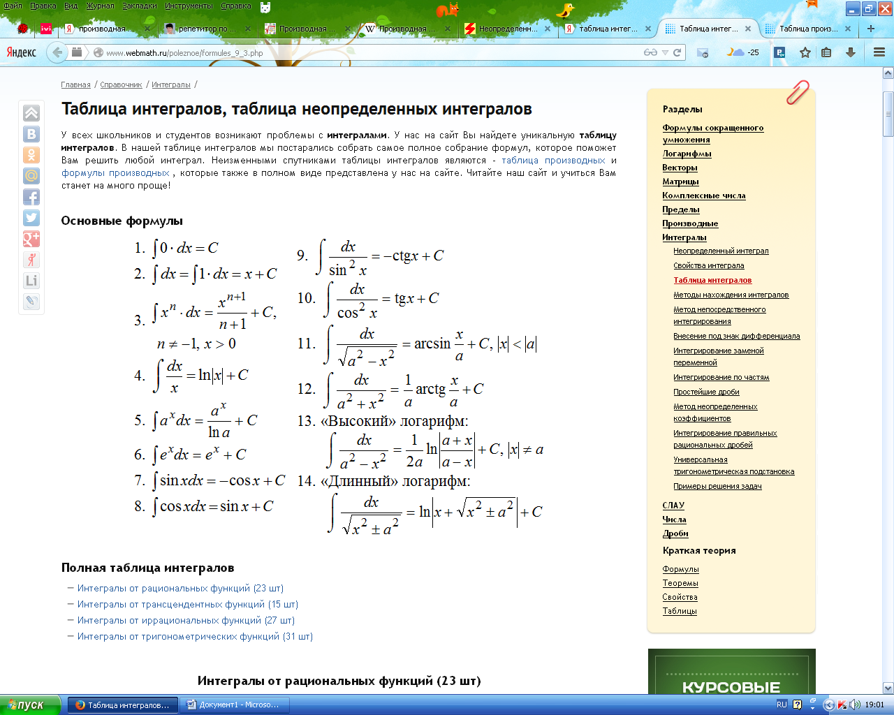 Таким образом, любой неопределенный интеграл достаточно легко проверить (в отличие от производных, где хорошую стопудовую проверку можно осуществить разве что с помощью математических программ). Это некоторая компенсация за большое количество интегралов разных видов.