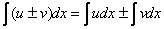 – интеграл от алгебраической суммы двух функций равен алгебраической сумме двух интегралов от каждой функции в отдельности. Данное свойство справедливо для любого количества слагаемых.