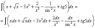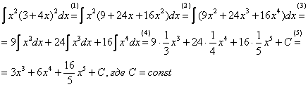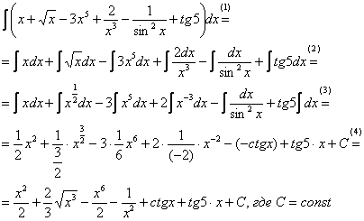 (3) Используем свойства линейности интеграла (оба правила сразу).
