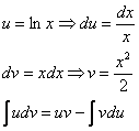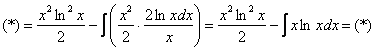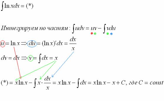 Как видите, применение формулы интегрирования по частям, по сути дела, свело наше решение к двум простым интегралам.