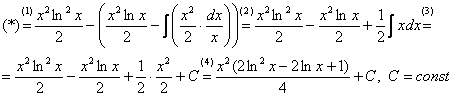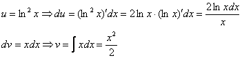 Под интегралом у нас снова многочлен на логарифм! Поэтому решение опять прерывается и правило интегрирования по частям применяется второй раз. Не забываем, что за