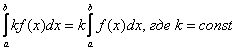 2. Как и для неопределенного интеграла, для определенного интеграла справедливы свойства линейности: