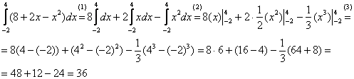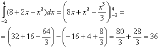 (в отличие от трёх скобок в первом способе). И в «целиковую» первообразную функцию, я сначала подставил сначала 4, затем –2, опять же выполнив все действия в уме.