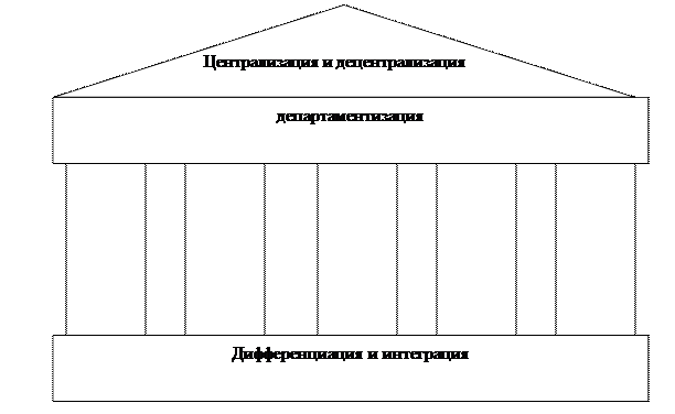 Проектирование организации можно сравнить со строительством «организационного здания». Первым элементом в этом процессе будет решение о количестве и функциональной принадлежности «помещений» в этом «здании», вторым – решение о группировании «помещений» в связи с задачами по их использованию, третьим – решение о соединении частей «зданий», четвертым – решение о размерах этих частей и т.д.