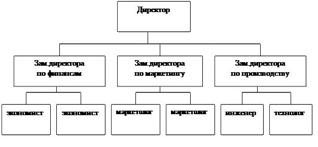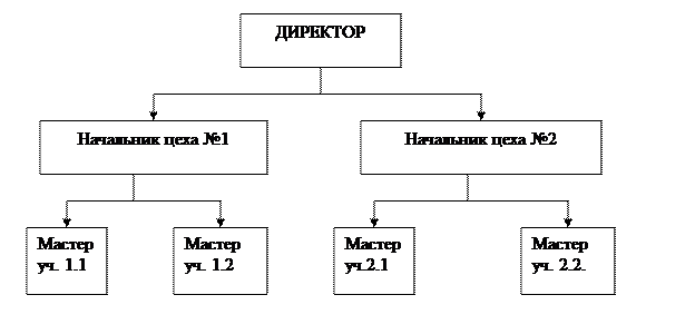 Данный тип организационной структуры управления применяется в условиях функционирования мелких предприятий с несложным производством при отсутствии у них разветвленных кооперированных связей с поставщиками, потребителями, научными и проектными организациями и т.д. В настоящее время такая структура используется в системе управления производственными участками, отдельными небольшими цехами, а также небольшими фирмами одно родной и несложной технологии.