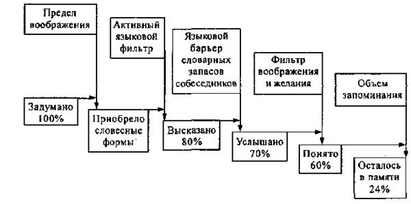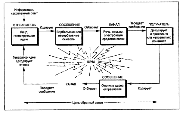 Например, генеральный директор торговой фирмы решил обсудить с менеджерами магазинов вопрос о состоянии и улучшении качества торгового обслуживания населения на совещании. В данном случае генеральный директор - отправитель, у которого зародилась идея; информация о состоянии и улучшении качества торговли - сообщения; совещание – это канал информации; получатели – менеджеры магазинов, которые интерпретируют сообщение и при помощи этого же совещания дают обратную связь генеральному директору.