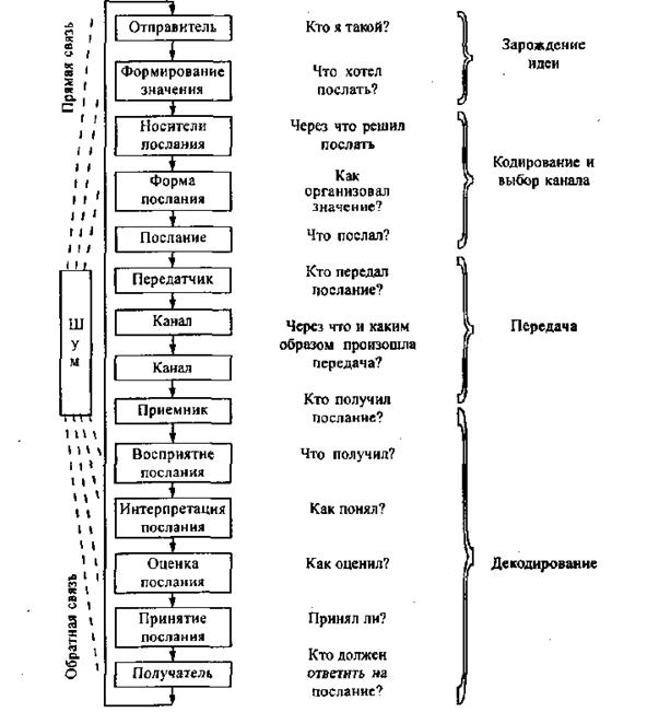 Коммуникационный процесс обмена информацией включает взаимосвязанные этапы: