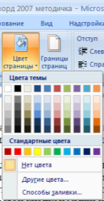 Однако, следует учитывать тот факт, что далеко не каждый цвет может воспроизвести принтер во время печати документа. Поэтому, лучше использовать стандартную палитру цветов. В этом случае можно быть уверенным, что цвет на экране монитора и на печати будут совпадать Также здесь можно выбрать и способ заливки фона страницы (градиентная, узором, текстурная). Или же выбрать какое-либо изображение для фона страницы.