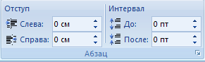 На панели "Абзац" расположены две опции форматирования абзаца: "Отступ" и "Интервал". Которые регулируют свободное поле по горизонтали и вертикали соответственно.