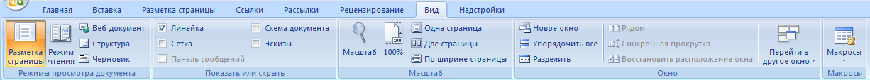 Панель "Масштаб" ленты "Вид" содержит 5 кнопок.