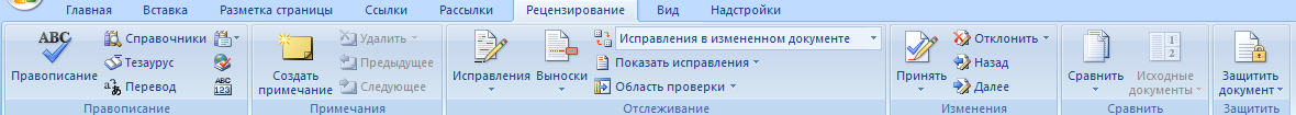 Иногда случается так, что с одним и тем же документом приходится одновременно работать нескольким пользователям. В этом случае нам помогут средства рецензирования и редактирования текстового редактора, собранные на ленте "Рецензирование".