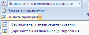 Кнопка "Область проверки" открывает дополнительную панель, на которой отображаются в хронологическом порядке внесение исправлений и добавления примечаний.