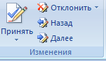 На панели "Изменения" собраны кнопки, позволяющие перемещаться между внесенными в документ правками, а также принимать или отклонять сделанные изменения.