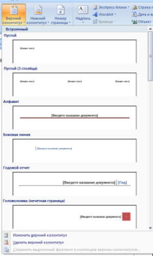 Отредактированный колонтитул можно добавить в галерею колонтитулов при помощи опции "Сохранить выделенный фрагмент в коллекцию верхних/нижних колонтитулов".