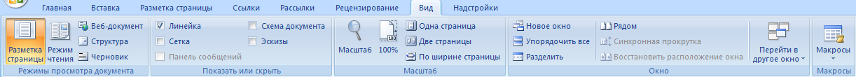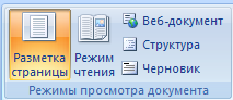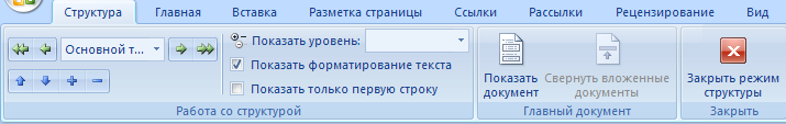 Для перехода в режим структуры документа служит кнопка "Структура" панели "Режим просмотра документа" ленты "Вид".