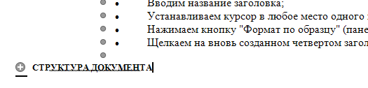 В режиме просмотра структуры документа отображается иерархия элементов оформления текста. Но, прежде чем использовать данный режим, необходимо отформатировать документ с применением стандартных заголовков. При этом, "Заголовок 1 уровня" является самым главным, "Заголовок 2 уровня" следует за ним и т.д.