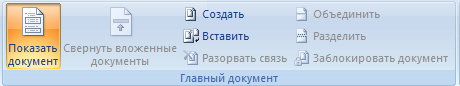 Для работы с большими документами предназначена панель "Главный документ". Суть работы сводится к тому, что сам документ разбивается на отдельные части, которые хранятся в отдельных файлах. Все "в кучу" собирается в главном документе, который должен быть предварительно структурирован.