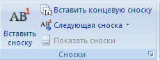 Для работы со сносками предназначена панель "Сноски", расположенная на ленте Ссылки