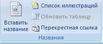 В Word 2007 можно создавать перекрестные ссылки на следующие элементы: заголовки, сноски, закладки, названия, нумерованные абзацы. Инструменты для работы с перекрестными ссылками находятся на панели "Названия".