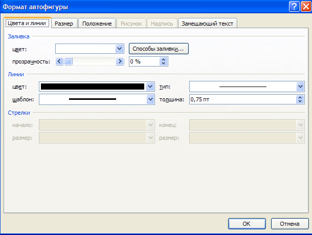 Окно панели "Стили фигур" содержит расширенные параметры форматирования "Формат автофигуры". В этом окне можно произвести большинство настроек форматирования.