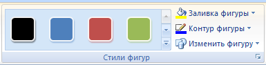 А также три кнопки: "Заливка фигуры", "Контур фигуры", "Изменить фигуру". Если ни один из предложенных стилей не подходит, то при помощи этих кнопок можно создать свой стиль форматирования.