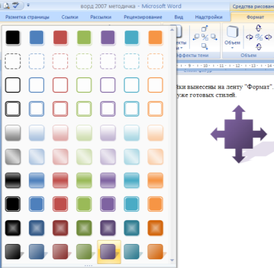 Панель "Стили фигур" содержит набор уже готовых стилей