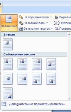 Кнопка "Положение" задает расположение графического объекта на странице.