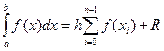 В случае равного шага h на всем диапазоне интегрирования общая формула имеет вид