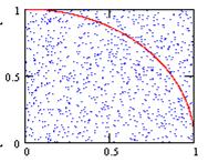 Рассматриваются две равномерно распределенных случайных величины x i и y i, которые можно рассматривать как координаты точки в двумерном пространстве. За приближенное значение интеграла принимается количества точек S, попавших под кривую y = f (x), к общему числу испытаний N, т.е.