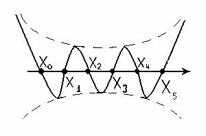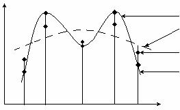 (х-хi) = wn(x) ведет себя при постоянном шаге так, как показано на рисунке. Многочлен Ньютона имеет погрешность 0(hn+1) и обеспечивает n+1-й порядок точности интерполяции.