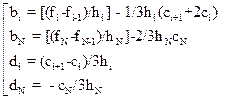 После определения коэффициентов ci, 2N коэффициентов bi и di вычисляются по формулам: