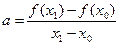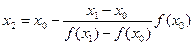 Идея метода проиллюстрирована рисунком. Задается интервал [ x 0, x 1], на котором f (x 0) f (x 1) ≤ 0, между точками x 0 и x 1 строится хорда, стягивающая f (x). Очередное приближение берется в точке x 2, где хорда пересекает ось абсцисс. В качестве нового интервала для продолжения итерационного процесса выбирается тот, на концах которого функция имеет разные знаки. Условия выхода из итерационного цикла: