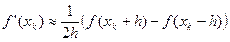 Обычно в практических реализациях данного метода не используют аналитический вид первой и второй производных f (x). Их заменяют конечно-разностными аппроксимациями. Наиболее часто берут симметричные разности с постоянным шагом h: