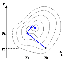 Каждый спуск заканчивается в точке, где линия градиента касательна к линии (поверхности) уровня. Это означает, что каждый следующий спуск должен быть перпендикулярен предыдущему. Таким образом, вместо поиска градиента в каждой новой точке можно сосчитать градиент в начальной точке, и развернуть оси координат так, чтобы одна их осей была параллельна градиенту, а затем осуществлять спуск координатным методом.