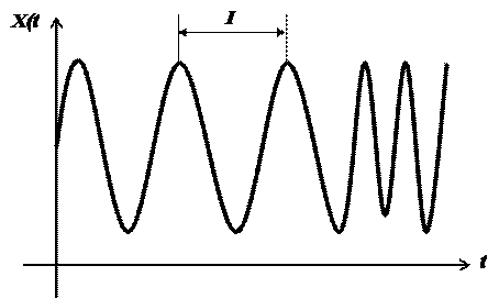 Рис.3. Частотно-аналоговый сигнал (непрерывный). Информационный параметр (I) – частота.