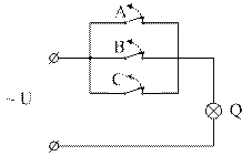 Примем, что если ключ A (B) замкнут, то А (В) равно единице, и наоборот, если разомкнут, то A (B) равно Ø. Если лампочка Q горит, то Q=1, если не горит, то Q=Ø.