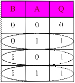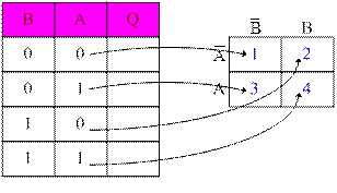 Четыре квадрата соответствуют четырем возможным комбинациям А и В в таблице истинности с двумя переменными. При этом квадрат 1 соответствует произведению