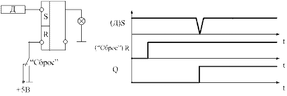 В различных научных и технологических задачах встречаются ситуации, когда некое важное событие существует очень короткое время, а знание о том, произошло это событие или нет, является очень важным. Используя свойства RS – триггера сохранять свое предыдущее состояние позволяет решить эту задачу.