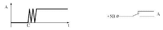 В момент первого касания (t2) подвижного контакта нижнего контакта на R – вход от подвижного контакта подается 0. И по правилам работы RS – триггера (S=1, R=0) триггер опрокинется, т.е. Q=0. Дальнейшее срабатывание кнопки, вызванное дребезгом, не изменит состояние триггера, т.е. на выходе Q дребезг не наблюдается.