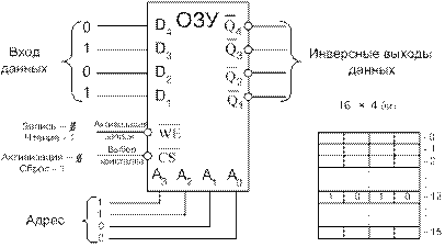 ) устанавливается 0 и информация с входов D1 – D4 (0101) запишется в ячейку памяти с адресом 1100 (12).