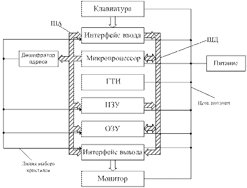 МП является центром всех операций, ему необходимо питание и тактовые импульсы. ГТИ может быть отдельным устройством или входить в состав (быть интегрированным) МП.
