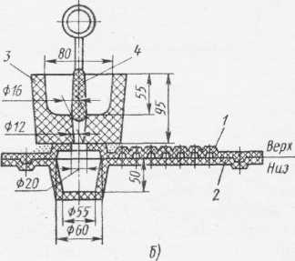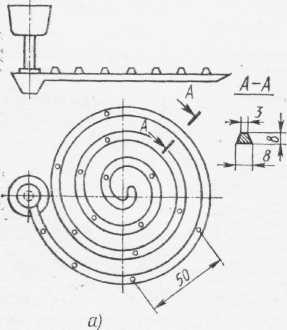 Рис.6. Спиральная проба (а) и литейная форма (б) для определения жидкотекучести сплавов.