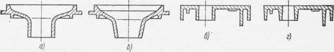 Рис. 11.40. Конструкции литых деталей: а, в – нетехнологичные; б, г – технологичные