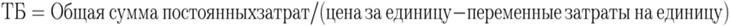 Точка безубыточности в единицах продукции — такое минимальное количество продукции, при котором доход от реализации этой продукции полностью перекрывает все издержкина её производство: