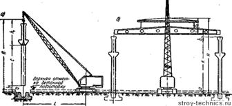 а – башенный кран; б – кабельный кран; в – кабельный кран; г – плашкоут
